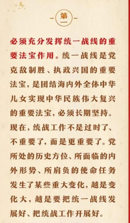 1月16日出版的第2期《求是》雜志刊發(fā)習近平總書記重要文章《完整、準確、全面貫徹落實關于做好新時代黨的統(tǒng)一戰(zhàn)線工作的重要思想》。在這篇重要文章中,習近平總書記充分肯定我們黨百年統(tǒng)戰(zhàn)的歷史性貢獻和新時代統(tǒng)戰(zhàn)工作取得的歷史性成就,用“十二個必須”對關于做好新時代黨的統(tǒng)一戰(zhàn)線工作的重要思想作出概括,強調關于做好新時代黨的統(tǒng)一戰(zhàn)線工作的重要思想,是黨的統(tǒng)一戰(zhàn)線百年發(fā)展史的智慧結晶,是新時代統(tǒng)戰(zhàn)工作的根本指針,全黨必須完整、準確、全面貫徹落實。